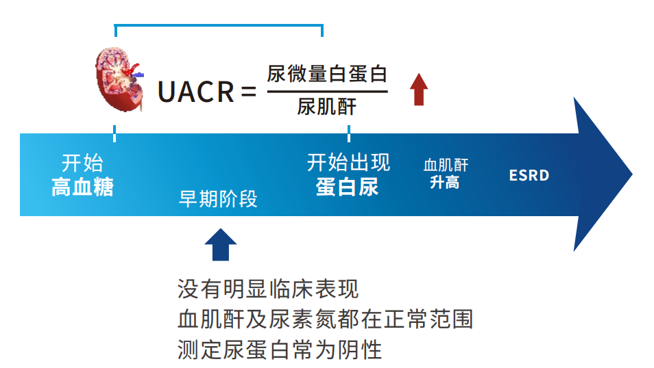 推薦診斷指標:隨機尿測定UACR(尿白蛋白/肌酐比值);