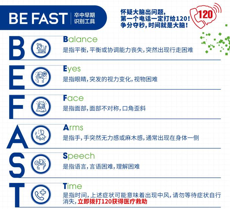 警惕卒中癥狀,盡早識(shí)別救治,牢記Befast口訣: