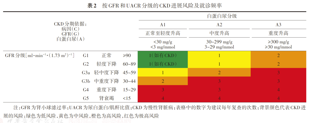 糖尿病腎病的分期按照腎臟病改善全球預后(KDIGO)指南建議聯(lián)合慢性腎臟病CKD分期(G1~G5)和白蛋白尿分期(A1-A3),描述和判定糖尿病腎病的嚴重程度。