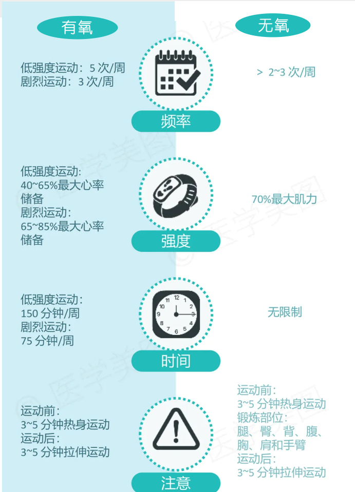 有氧運(yùn)動(dòng)能充分燃燒體內(nèi)脂肪,有利于血糖、血脂的控制;無氧運(yùn)動(dòng)則能鍛煉肌肉力量和增加肌肉圍度,可預(yù)防骨質(zhì)疏松,還能增強(qiáng)心肺功能。具體選擇有氧還是無氧,可根據(jù)自身情況和預(yù)期想要達(dá)到的效果進(jìn)行運(yùn)動(dòng)方式的選擇。