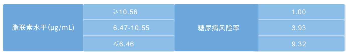 1、低脂聯(lián)素水平個體發(fā)生2型糖尿病的風險是正常水平個體的9.32倍